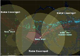 The radar information from up to 3 radar stations can be integrated and tracked on the VTS screen. This function allows the seamless surveillance of a wider sea area. A shadow area which a single radar station cannot detect can also be monitored by the multi-radar integrated system.