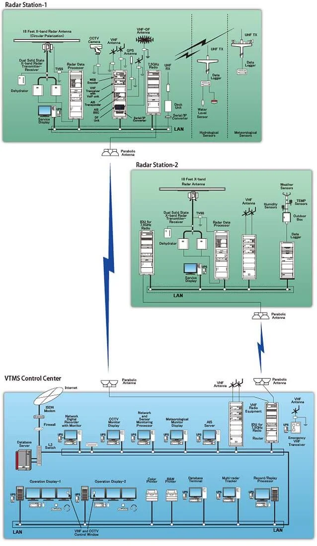 A vessel traffic system (VTS) is a marine traffic monitoring system established by harbour port, Off-Shore, etc. VTS will provide useful information in order to carry out the port and ship movements grasp and safety management in the surrounding waters.