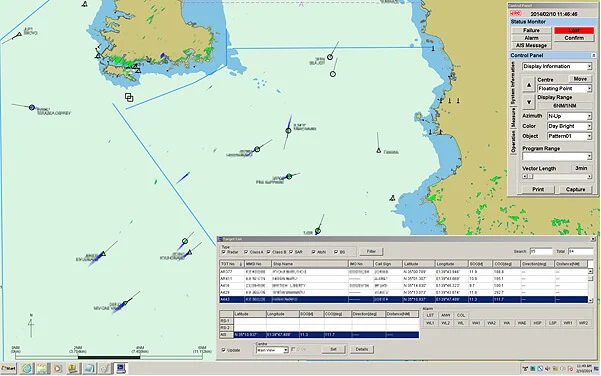One of the main functions to attain the purpose of VTS is the function of monitoring vessel movements, by which the positions and movements of a number of vessels navigating in the water areas within the multi-radar coverage can be monitored and presented on an electronic chart display screen. Using this function, the VTS operator can transmit proper messages to each vessel and accurate information to various organizations related to ports and routes.